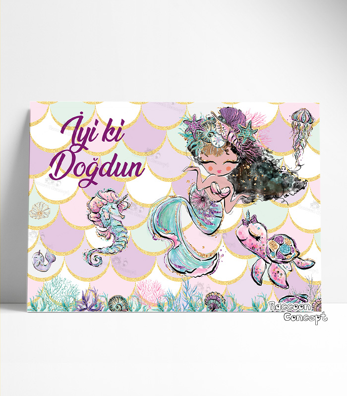 Deniz Kızı temalı doğum günü afişi arka planlarımızla çocuklarınızın doğum günlerini unutulmaz bir anıya dönüştürmek sizin elinizde.