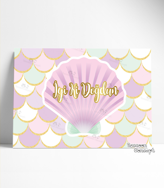 Deniz Kızı temalı doğum günü afişi arka planlarımızla çocuklarınızın doğum günlerini unutulmaz bir anıya dönüştürmek sizin elinizde.